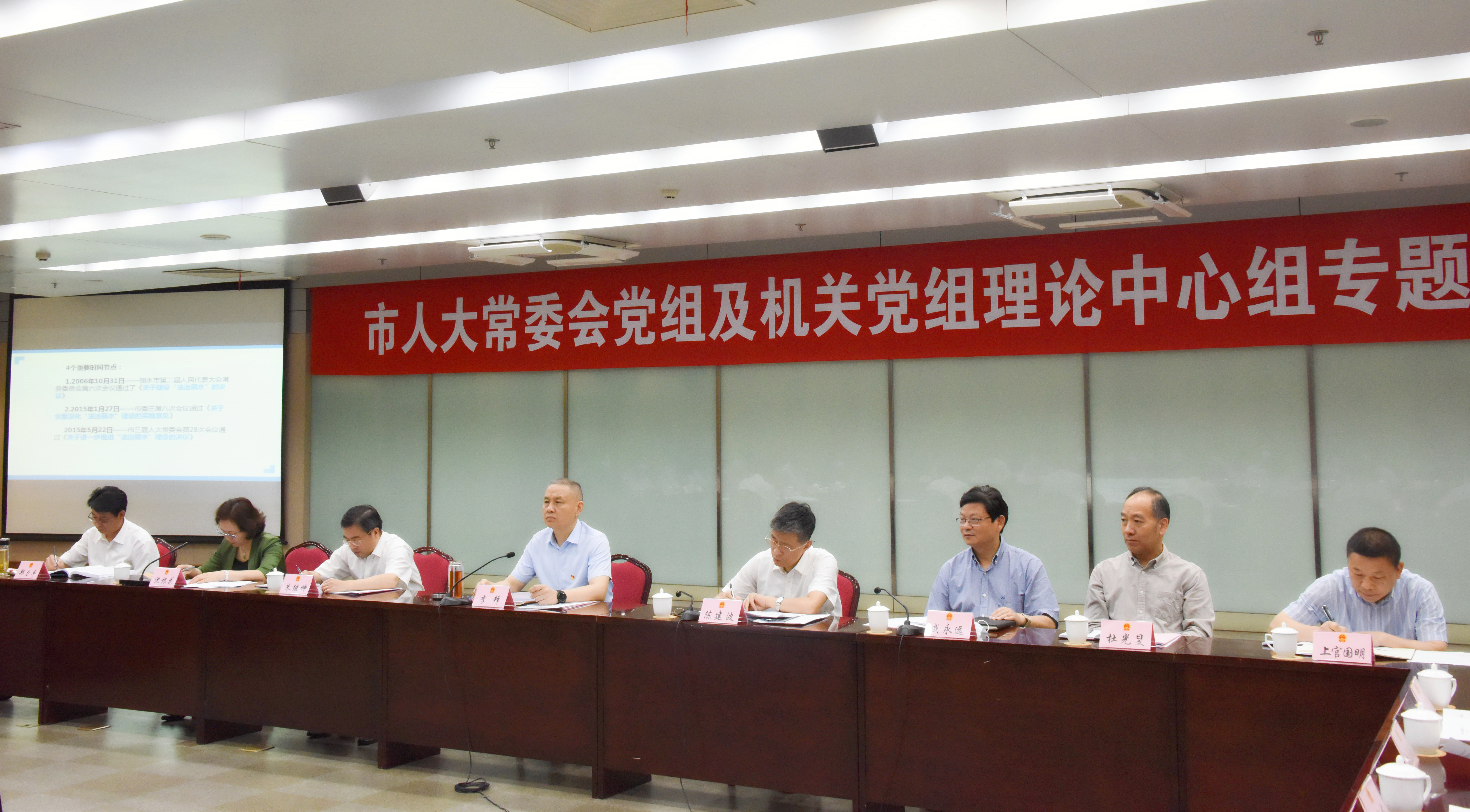 今天上午,市人大常委会党组及机关党组理论学习中心组,召开党史和法治丽水建设专题学习会。市人大常委会党组书记、主任李锋出席会议。市人大常委会副主任陈建波、朱继坤、戚永远、沈根花、杜光旻、郑力平,秘书长上官国明参加会议。